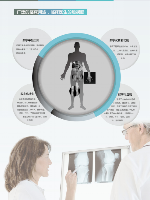 一、數(shù)字平板攝影:真正的動(dòng)態(tài)DR采用平板探測(cè)器成像,可替代平板DR進(jìn)行數(shù)字?jǐn)z影,獲得高度千萬像素的大尺寸(通常是17"*17"或14"*17")影像。