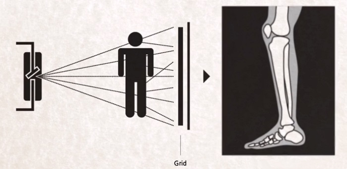 通過固定半徑的多條柵條過濾散射線,將這一部分散亂的射線過濾掉,盡量只保留筆直射入的射線,從而提高成像清晰度。