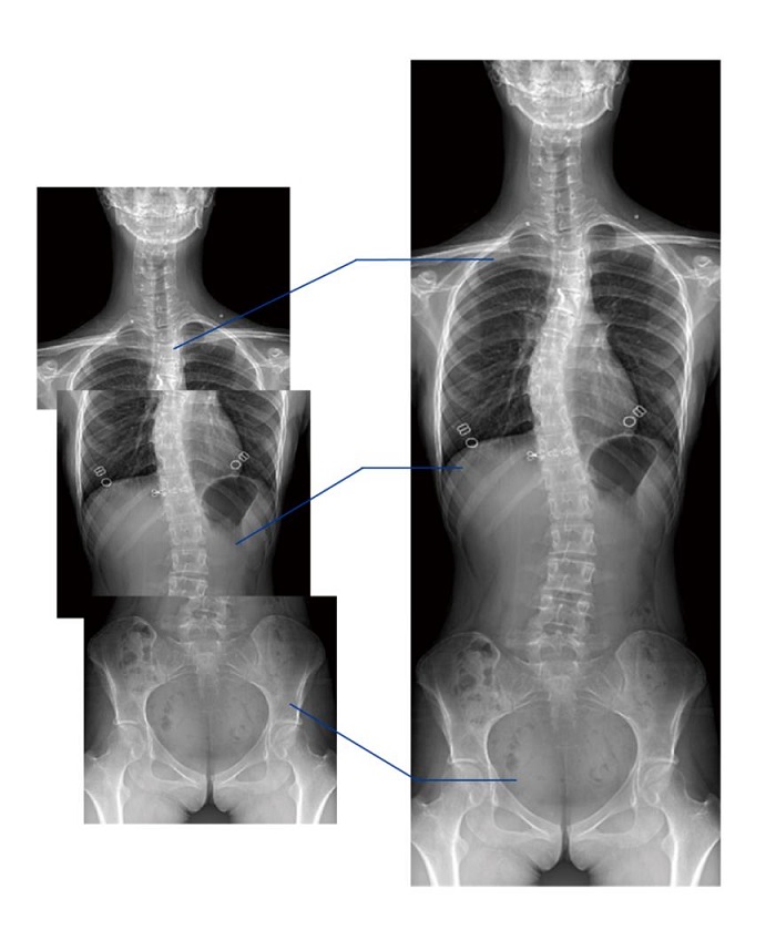 另外,動態(tài)DR的全景拼接功能,可通過對脊柱、下肢及下肢靜脈造影進行分段攝片,然后對分段圖像進行拼接,在一幅X光圖像上完整顯示全脊柱或下肢整體形態(tài)。對于骨科疾病患者的全脊柱、全下肢病變情況圖像展示更加具有完整性,有助于骨科疾病患者臨床診斷效果的提升。