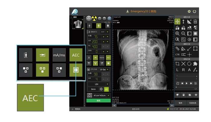 自動(dòng)曝光控制(AEC)功能可以根據(jù)被照體的厚度、生理及病理特征,準(zhǔn)確、自動(dòng)控制X線劑量,使不同部位、不同病人拍攝的圖像,具有相同的感光量,徹底解決感光量不一致的問(wèn)題,保證良好的影像效果。操作醫(yī)生無(wú)需選擇參數(shù),只需擺完體位后,按預(yù)設(shè)值曝光即可完成攝片。