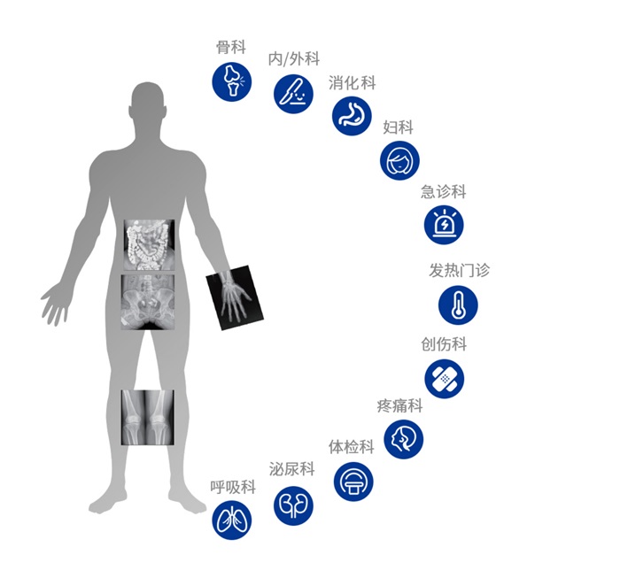 其次,臨床應用更加廣泛,能為影像科提供全科解決方案,針對體檢科、內(nèi)科、外科、骨科、急診科等也能提供相應的解決方案,且檢查更精準、直觀,擺位攝片效率極大地提升,大大節(jié)省拍片時間。